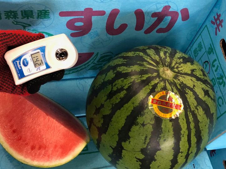 JAつがるにしきたから鰺ヶ沢町産のハウスすいかが初入荷。