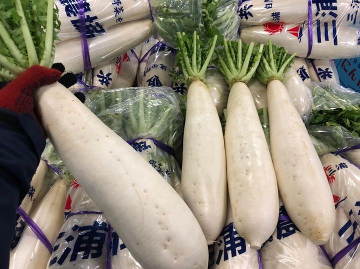 青果市場の年末の風物詩、神奈川県三浦半島の特産品「三浦大根」が入荷しました。