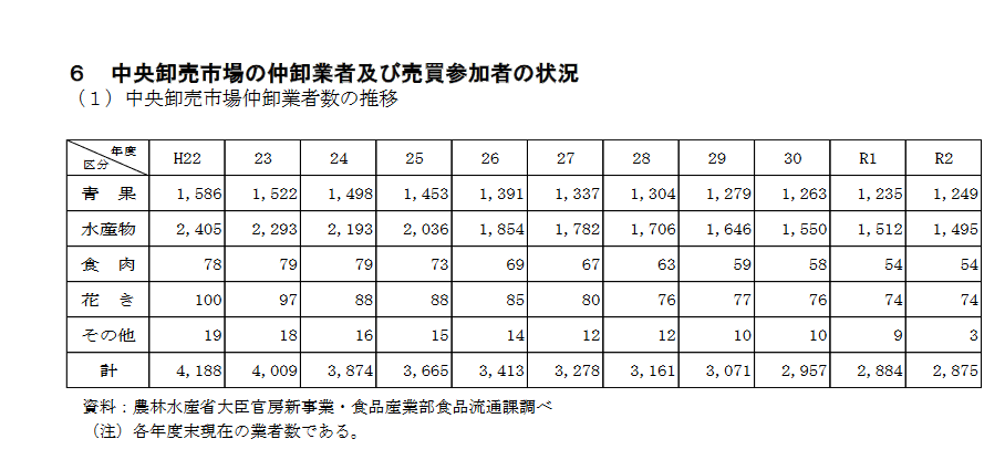 東京や大阪の老舗仲卸業者の廃業も相次いだが、一方で大手卸売会社の取り扱い高を超えるような1000億円規模の仲卸も出現している。