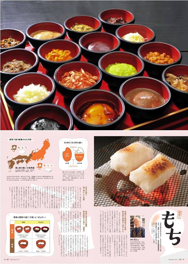 広報誌aff(あふ)12月号では、このように食べ方豊富な「もち」を特集。角もちと丸もちの境界線は?