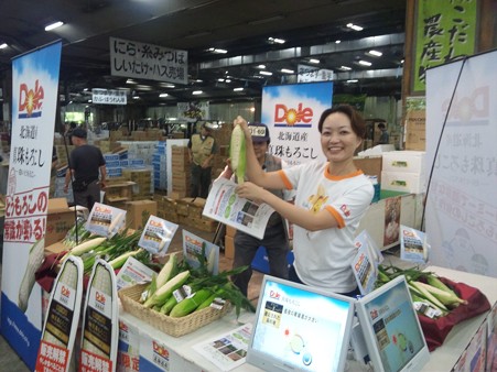 ドールが国内産・青果物を販売する時代ですよ。今朝の築地市場青果部ドールの白とうもろこし、真珠もろこしキャンペーン♪