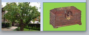 写真右の箱は大英博物館蔵の茶をいれる箱なんだそうですが、実はこの切り倒された桑の樹で作られました。