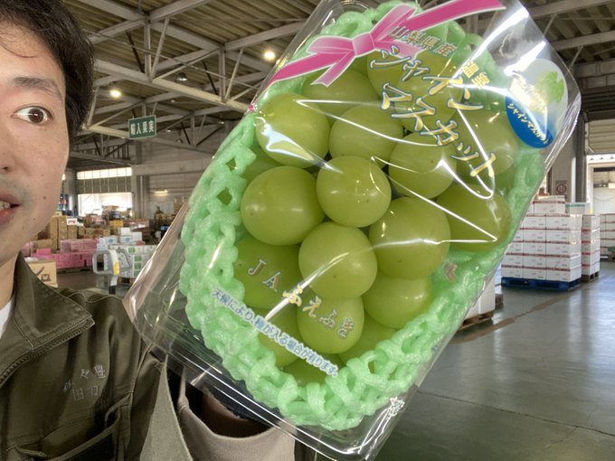 山梨県産の「#シャインマスカット 」の入荷が始まっていますよ〜!