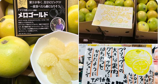 あなたのハートにズッキュン スポンサードリンク マイビズトレンド X Facebook はてブ LINE Pinterest コピー 2022.01.152025.05.02 あなたのハートにズッキュン 光 ~八百屋21年目突入~さんから あなたのハートにズッキュン キラキラメロゴールド 文旦とグレープフルーツを掛け合わせてできた人気の輸入柑橘みかん 果汁たっぷりで苦味も酸味も少なくて甘いので グレープフルーツ苦手な人でもこれならイケちゃう! 美味しい季節到来中! これであなたもメロメロ 是非見かけたら食べてみてね