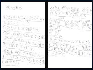 40年近く研究生活を送ったのですが、これはと思える素晴らしい成果を上げることもなく、研究生活は終わりを告げたのですが、子供たちからいただいたメッセージを読んだら、こんな素晴らしいことをしてたんだと、今更感激。