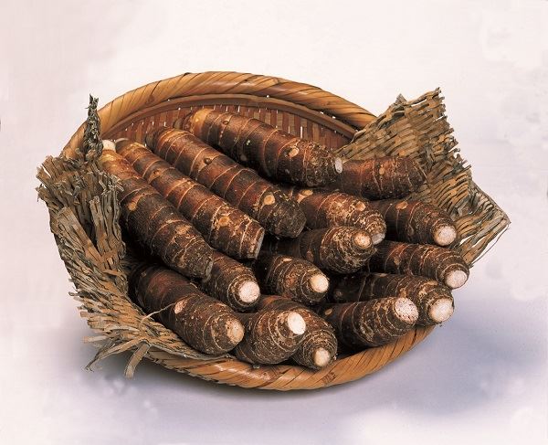 畑に植わっている姿がたけのこに似ていることから、別名は「たけのこいも」。長さが30cmから40cm程にもなり、日本最大のいもの一つとも言われています。