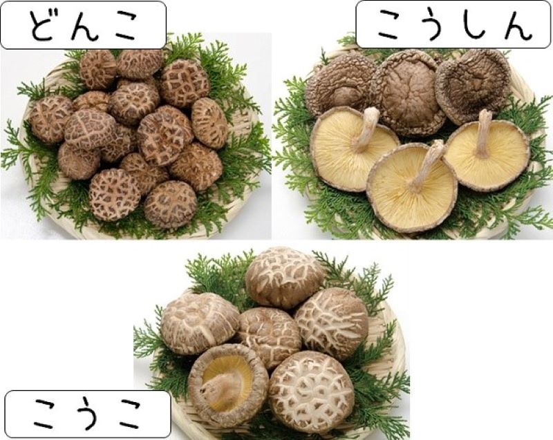 「どんこ」は傘が七分開きにならないうちに採取したもので、傘の肉は厚く、全体が丸みを帯び、しいたけそのものを楽しむ煮物などに向いています。