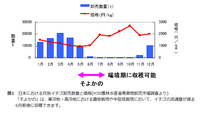 そこで端境期に収穫できる大粒イチゴの新品種「そよかの」が農研機構によって育成されました。