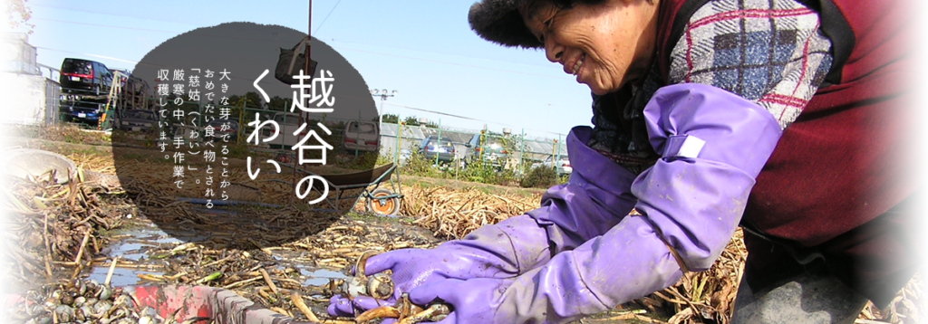 埼玉県のクワイの生産量は広島県に次ぐ全国2位。越谷市のクワイは荻島・出羽地区で盛んに栽培され生産量・作付面積とも県内トップクラスであることから、越谷市を代表する特産物となっています。