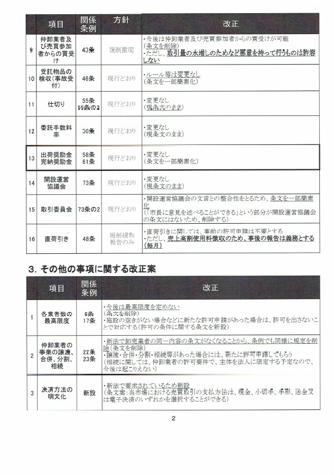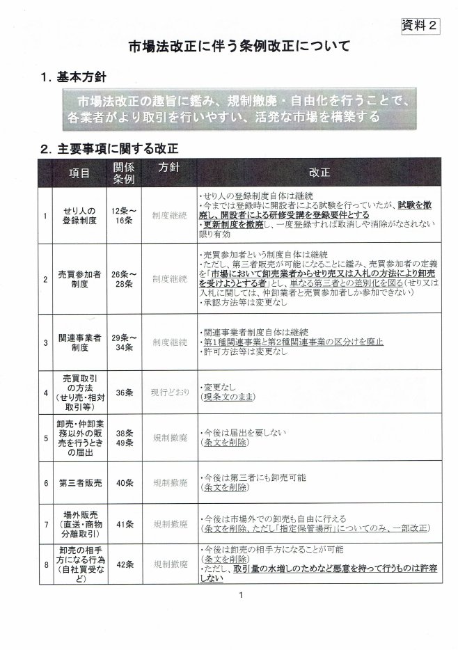 岐阜市中央卸売市場が業務条例 改正案 スポンサードリンク 開設者、卸、仲卸、小売 X Facebook はてブ LINE Pinterest コピー 2020.03.022024.11.05 ソーシアルメディアで青果物流通 岐阜市中央卸売市場が業務条例 改正案 濃飛新報@nora_journalから #岐阜市中央卸売市場業務条例 改正案、#直荷引き と #第三者販売 を認め #商物一致原則 を撤廃するだけでなく、せり人の試験制度と更新制度を撤廃、 卸売業者が卸売・仲卸業務以外の販売を行うときの届出不要、卸売業者が卸売の相手方になる行為や仲卸業者及び売買参加者からの買受も可能との内容です。