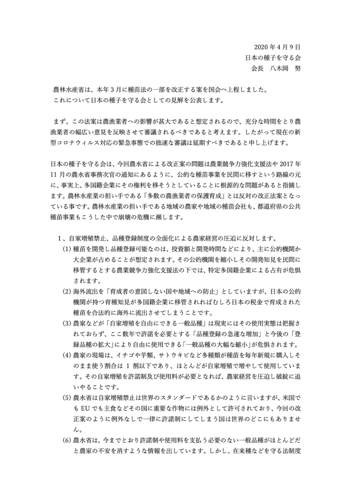 農家がタネ採りする権利を守ろう スポンサードリンク タネのいろいろ X Facebook はてブ LINE Pinterest コピー 2020.04.132024.11.17 農家がタネ採りする権利を守ろう 堤未果@TsutsumiMikaさんから 【拡散希望】 16日(木)農水委員会で極重要法案が審議入り 警告 農家がタネ採りする権利の規制を農家なしで決める。他国が主食の種だけは守る中、日本は一律禁止 怒りマーク タネの開発データは企業に提供 怒りマーク。 食糧危機が迫る今、守るべきは国内農家。この審議こそ「不要」 怒りマーク 生命に特許はもっと不要。 #種苗法改正