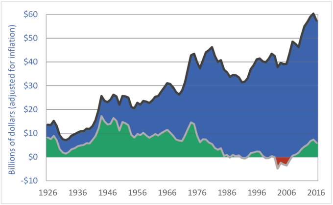 図の灰色の折れ線はカナダの農民の純収入。
