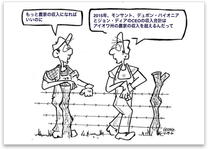 農家と消費者の犠牲で栄える企業 スポンサードリンク タネのいろいろ X Facebook はてブ LINE Pinterest コピー 2020.05.272024.10.16 農家と消費者の犠牲で栄える企業 INYAKU Tomoya 印鑰 智哉@tomo_nadaさんから モンサント(現バイエル)などのアグリビジネスのCEO数人の収入がアイオワ州全農家の収入よりも大きい(by Rick Friday)。 これが安倍政権の世界一、民間企業が活躍しやすい国がめざすところ。 農家だけでなく消費者の犠牲の下に極少数の企業が栄える。 もうゴメン。 詳細はこちら