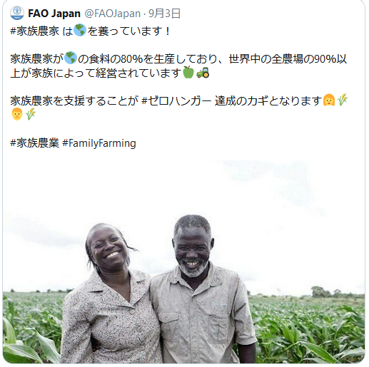 家族農業 は地域活性化、そして命の安全保障 にもつながる スポンサードリンク タネのいろいろ X Facebook はてブ LINE Pinterest コピー 2020.09.042024.09.22 家族農業 は地域活性化、 そして命の安全保障 にもつながる 日本の種子(たね)を守る会@SaveSeedsJapanさんから #家族農業 は地域活性化、そして #命の安全保障 にもつながりますね。 特に中山間地の多い日本では家族的な農業が大きな役割を担っています。