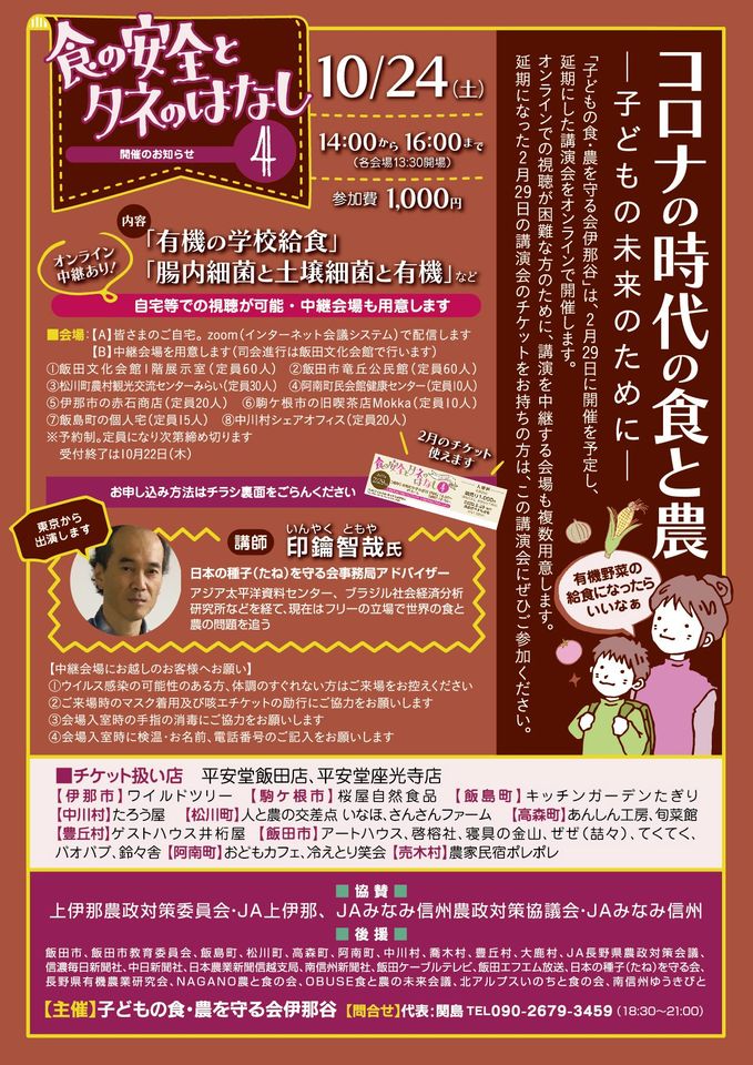 子どもの食・農を守る会伊那谷主催のオンライン講演会 タネのいろいろ X Facebook はてブ Pocket LINE コピー 2020.09.232024.11.17 コロナの時代の食と農 == 子どもの未来のために == 子どもの食・農を守る会伊那谷主催のオンライン講演会 INYAKU Tomoya 印鑰 智哉@tomo_nadaさんから 10月24日、子どもの食・農を守る会伊那谷主催のオンライン講演会。 長野では農家、消費者、農協、JAさらに行政が連携とりながら、画期的な種子条例を作り上げ、さらに県が有機農業推進プラットフォームを作り、市民参加で画期的な取り組みを行っています。 とても楽しみです 詳細はこちら