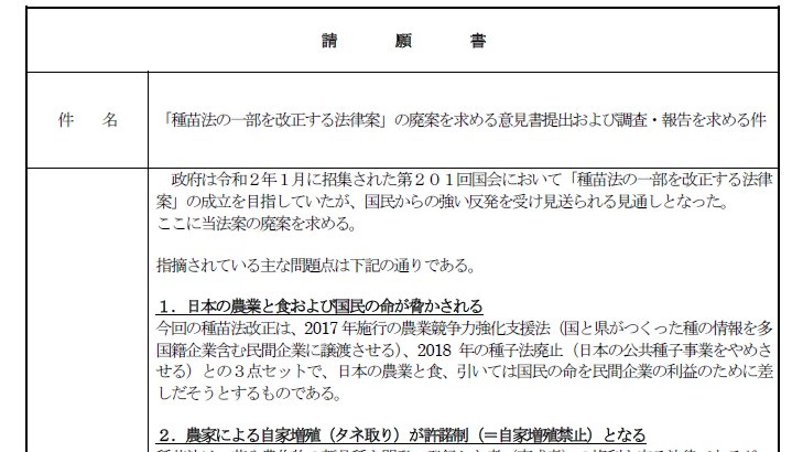 地方から 命の安全保障が始まる スポンサードリンク トピックス X Facebook はてブ LINE Pinterest コピー 2020.10.082024.12.02 地方から 命の安全保障が始まる 地方議員・議会に働きかけることに大きな意義 日本の種子(たね)を守る会@SaveSeedsJapanさんから 自治体の9月定例会での #種苗法改正案 に関する国への意見書の採択情報が届く。 淡路市、丹波市、枕崎市、与論島など。残念ながら否決の連絡もあるが、タネを守るために個人や市民団体が仕事や育児の合間に地方議員・議会に働きかけることに大きな意義を感じる。 地方から #命の安全保障