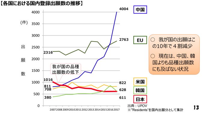 種苗の新品種開発でも日本は中国にとっくの昔に追い越されている。