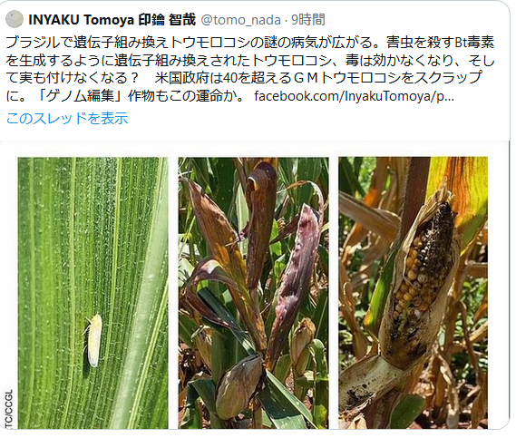 高まる中南米の在来種を守ろうという運動 スポンサードリンク タネのいろいろ X Facebook はてブ LINE Pinterest コピー 2021.02.022025.04.18 高まる中南米の在来種を守ろうという運動 INYAKU Tomoya 印鑰 智哉@tomo_nadaさんからRT このブラジルのニュースを読んで、思わず宮崎駿監督の『風の谷のナウシカ』の巨神兵を想像してしまった。 かつて人類は実に愚かなことを考えたものだ、と。 結局、破壊するだけで何も役に立たない。 こんな化け物から在来種のトウモロコシを守ろうという運動が中南米では強くなっている。 それが希望