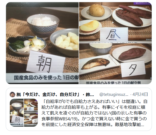 敵基地攻撃能力の増強より早急な自給率向上こそ安保。