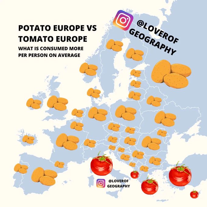 ヨーロッパではどちらを多く食べているか? スポンサードリンク トピックス X Facebook はてブ LINE Pinterest コピー 2022.09.03 目次 ヨーロッパではどちらを多く食べているか? ヨーロッパではどちらを多く食べているか? Spicaさんから ポテトとトマトで分けるヨーロッパ 各国民はどちらのほうを多く食べているか? ※重量ベース
