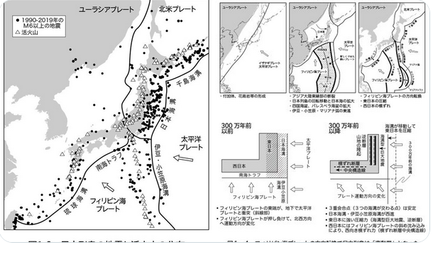 美食地質学入門(光文社新書)では、まず惑星地球の誕生とプレート運動の発現、世界一の地震・火山大国日本、日本列島の成立:アジア大陸の分裂と移動、変動帯日本列島の成立について、要点をまとめています。