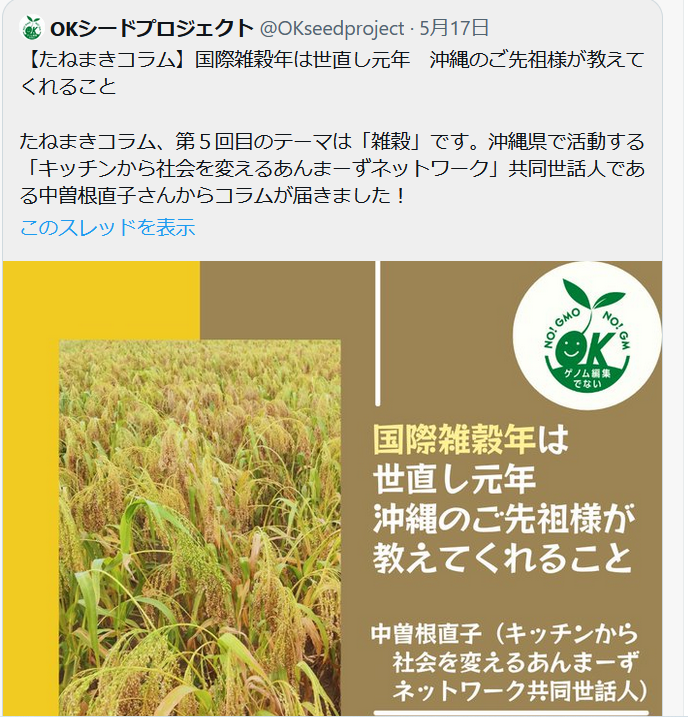 今年は国際雑穀年。