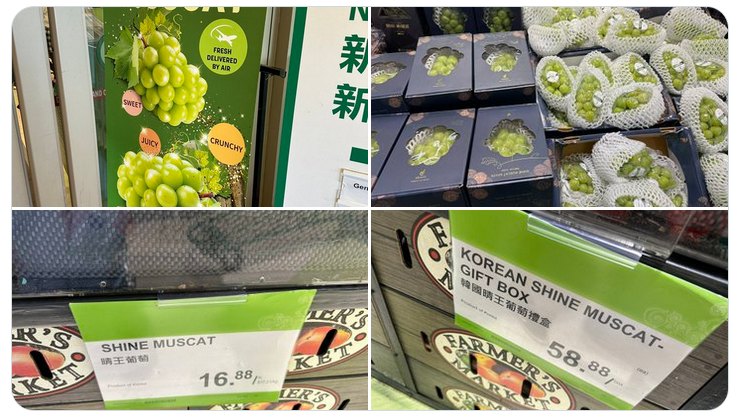最近カナダで最大級のアジア系スーパーが韓国産シャインマスカットを推していまして、お店の入り口に大きな広告も出ていました。