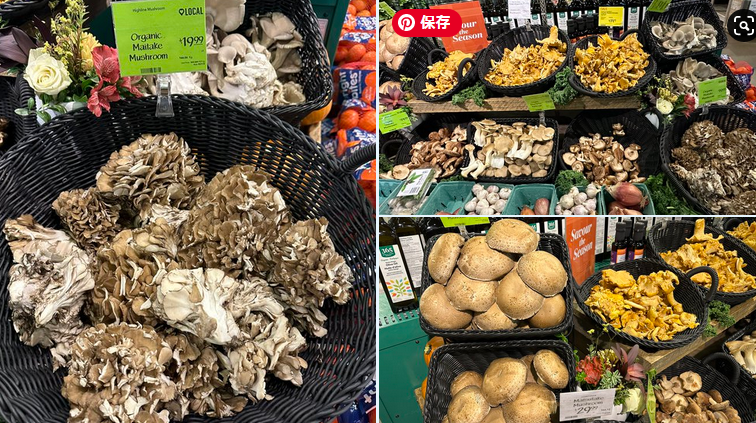 アメリカやカナダで人気のオーガニック系スーパー Whole Foodsのキノコ売り場で舞茸を見つけましたよ。