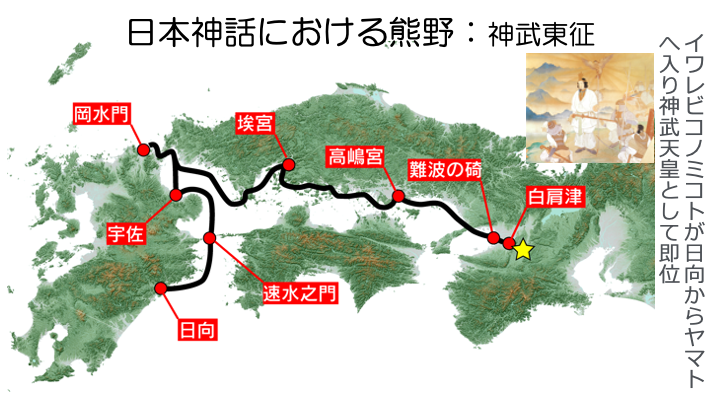 紀伊熊野は神武東征の舞台でもある スポンサードリンク トピックス X Facebook はてブ LINE Pinterest コピー 2023.11.082024.09.08 紀伊熊野は神武東征の舞台でもある 巽好幸さんから 紀伊熊野は神武東征の舞台でもある。 日本神話の主神で太陽神であるアマテラス、その孫で高千穂へ天孫降臨を果たしたニニギ。 その曾孫で高天原の神々の直系に当たるカムヤマトイワレビコは、兄と共に葦原中国(日本列島)を治めるために日向を経ち、奈良盆地へと向かった。 #世界遺産 #紀伊山地参詣道