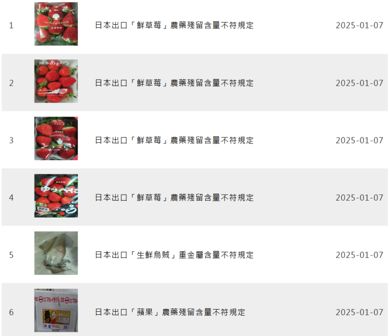 残留農薬 産地への不信感募る スポンサードリンク ニュース X Facebook はてブ LINE Pinterest コピー 2025.01.082025.06.06 残留農薬 産地への不信感つのる 有機農業ニュースクリップ 【残留農薬】 台湾衛生福利部食品藥物管理署は1月7日、イチゴ4ロット(佐賀産、福岡産、熊本産)と青森産リンゴから残量基準値を超える農薬を、また北海道産イカから基準値を超えるカドミウムを検出し廃棄・積戻し。 台湾食品藥物管理署