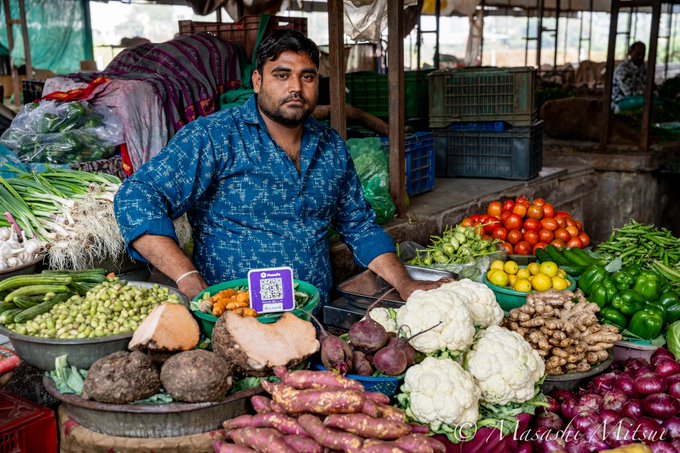 市場で野菜を売るこんな店でも、必ずQRコードを持ち、お客がそれをスマホで読み込めば支払いが完了する「なんとかPay」システムに加入している。