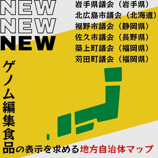 地方自治体から国に「ゲノム編集」食品の表示を求めるマップ