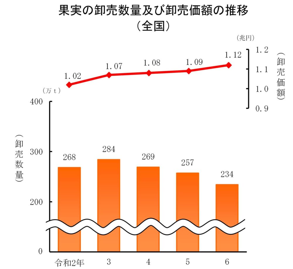 これは、みかん、りんご等の卸売数量が減少したためです。