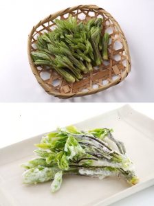 食べ方も、天ぷらは外せない一品。葉が開かないうちは、アクも強くないのでおひたしや和え物でも楽しめます。