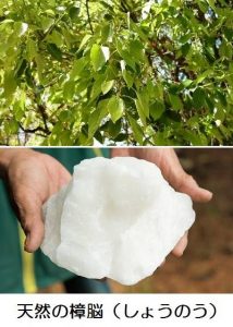 樟脳といえば独特のツンとする強い匂いのイメージがありますが、天然の樟脳の匂いを嗅いでみると、「おばあちゃんのタンスの匂い」とはちょっと違い、思いのほか清々しい植物の香りがしました。