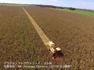 写真は、マトグロッソ・ド・スル州ドウラードス地域のとうもろこし畑です。2016年6月9日現在、冬とうもろこしの収穫作業が進んでいます。