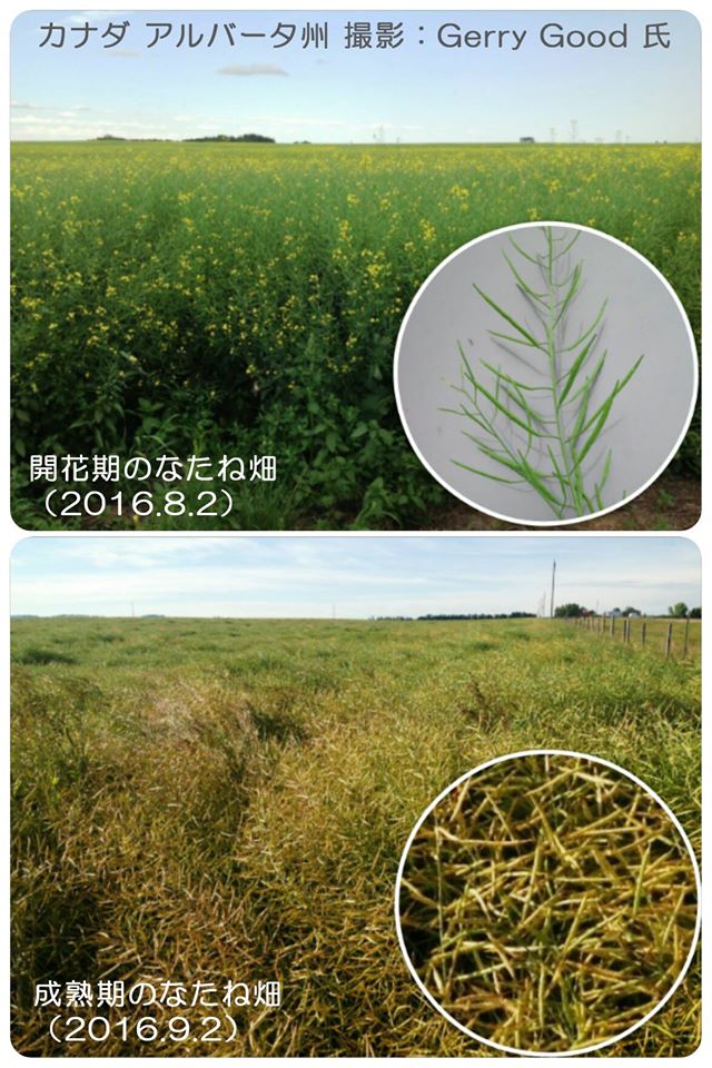 ここ、アルバータ州在住のグッドさんの畑では、9月2日現在、なたねが成熟期を迎えています。