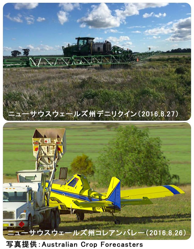 オーストラリアの米産地、ニューサウスウェールズ州南部では、2016年5月以降、降水量が平年を上回り、小麦等の冬作物は順調に生育しています。しかし、この雨を受けて雑草も多く繁殖しています。