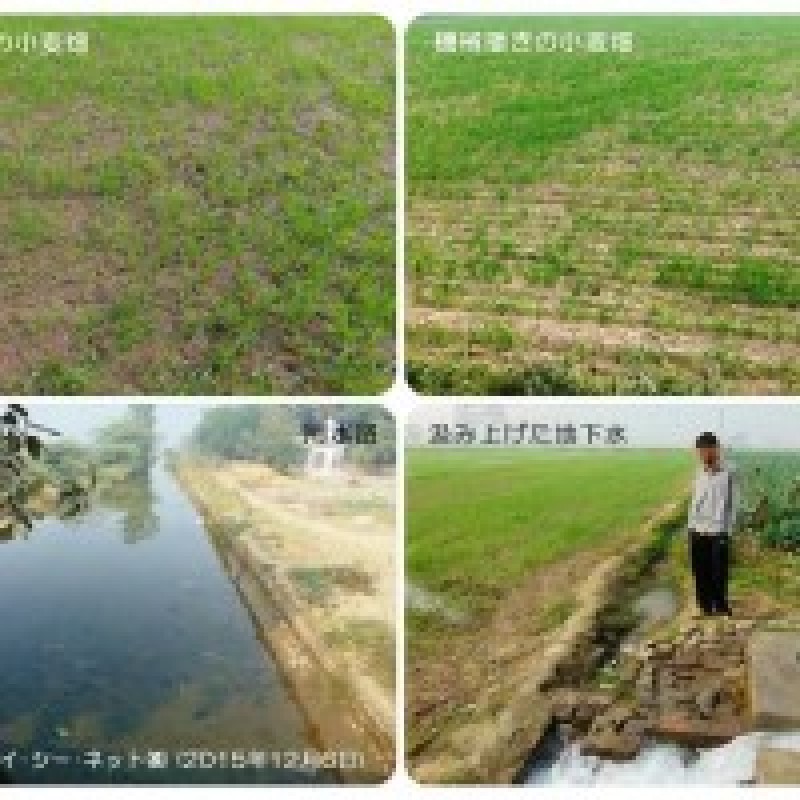 インドでは、小麦のは種は例年10~12月に行われます。2016/17年度のは種作業も2015年10月頃から開始されましたが、手播き(写真左上)、機械播き(写真右上)のどちらも行われています。