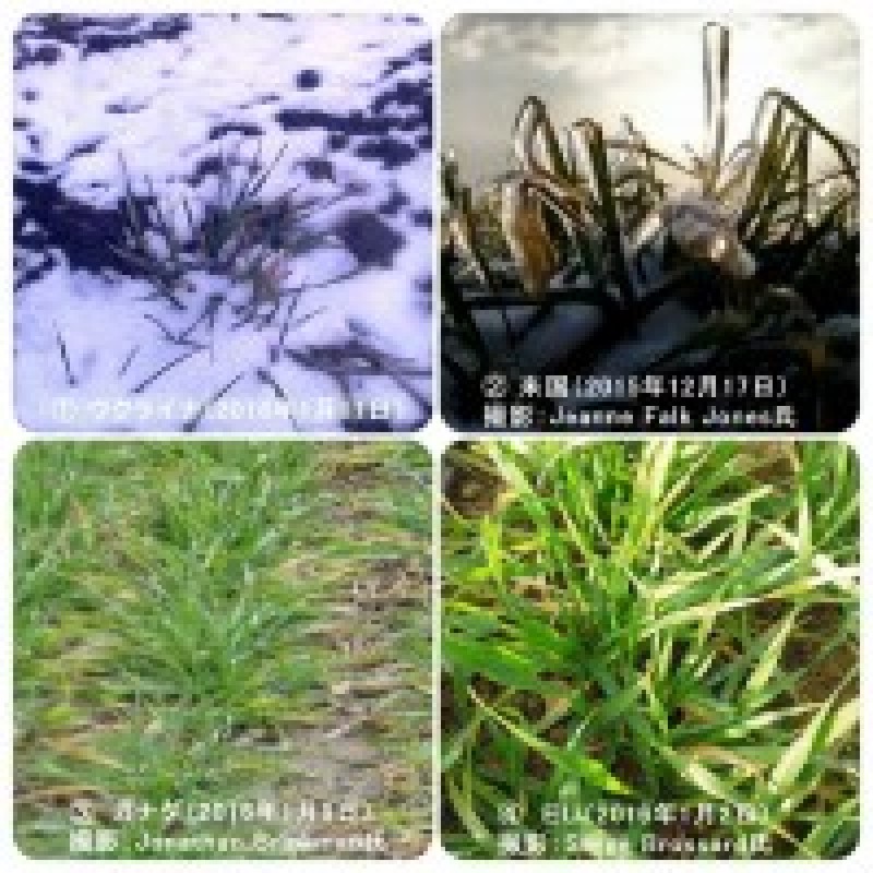 冬小麦は土壌温度が低い状態が続くと枯死してしまうため、外気の寒さを防いでくれる積雪(スノーカバー)はとても大切な存在です。しかし、写真①のウクライナでは、今年は雪が少なく、今後の寒波到来による凍害発生の懸念もありますが、今のところ大丈夫だそうです。