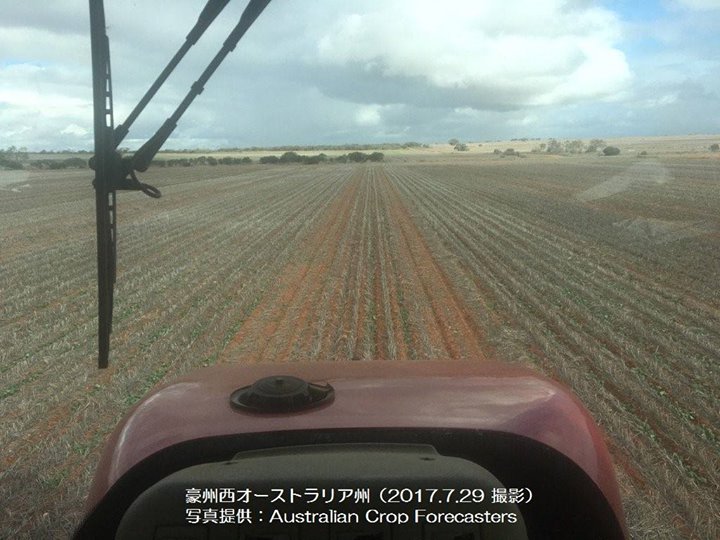写真は、西オーストラリア州ノーサンプトンのなたね畑です。今シーズンは降水量が非常に少ないため、この農家はなたねの栽培に苦労しており、生産見通しの改善には、更なる降雨が必要な状況となっています。