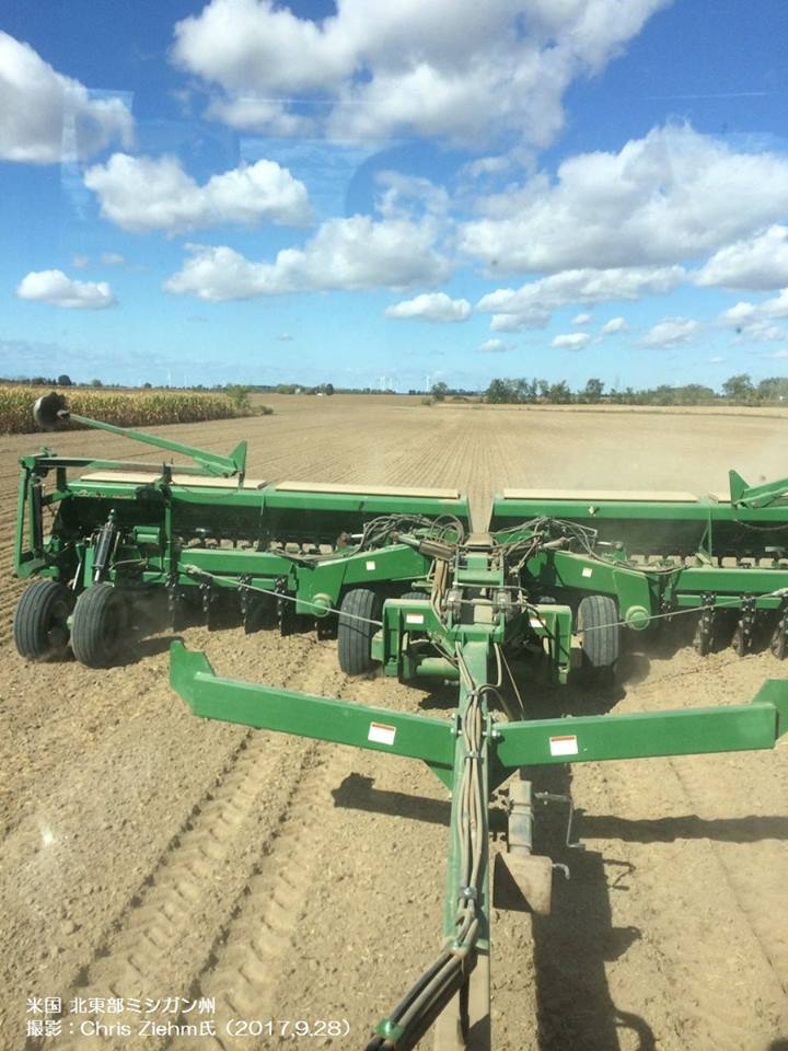 本日の写真は、9月下旬の米国北東部ミシガン州での冬小麦の播種作業の様子です。