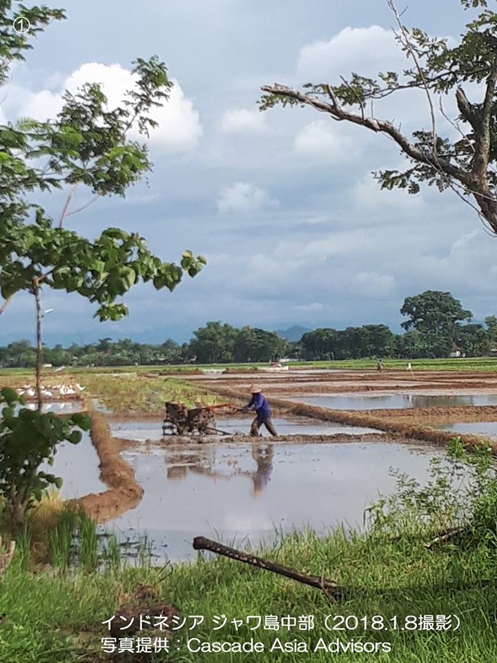 本日の写真は、2018年1月8日に撮影したインドネシアの米主産地ジャワ島中部の田植え前の圃場です。