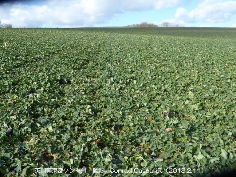 In the photo②, as you can see some wheat straw lying on the ground, this rapeseed in the field has been planted as a break crop in succession to wheat.
