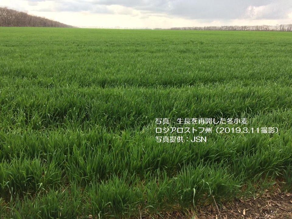 ロシアでは、2018/19年度の小麦生産量が前年より減少し71.7百万トンと見込まれていまが、すでに2019/20年度の冬小麦の作付けが終了し、休眠期を脱しつつあります。