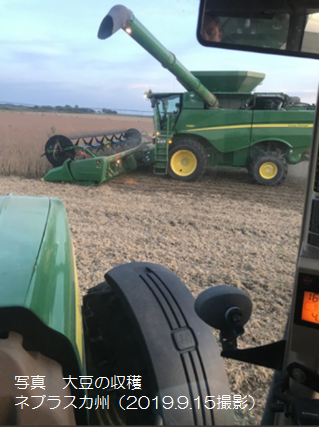 写真は、アメリカのコーンベルト西部のネブラスカ州の大豆の圃場です。