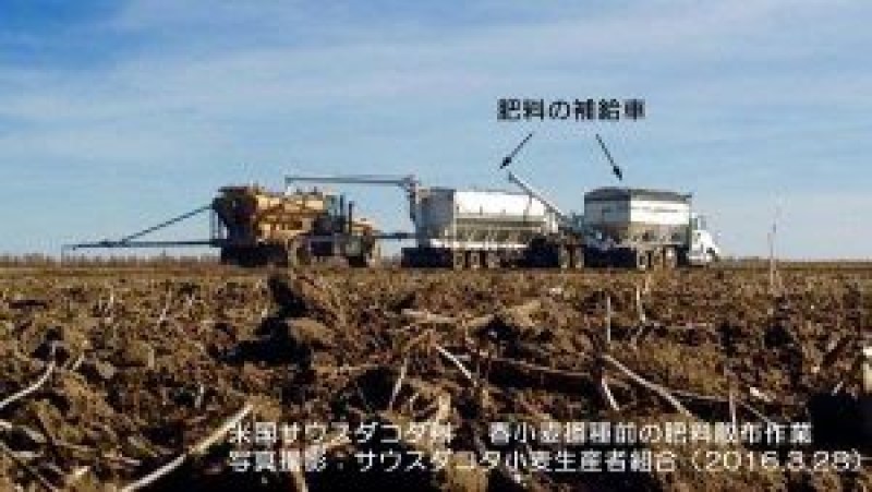 米国の春小麦の産地サウスダコタ州では、3月末、播種前の肥料散布で大忙しでした。