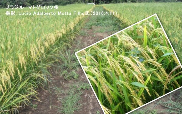 ブラジル中西部マトグロッソ州では、2015年10~12月に植えた陸稲のうち、早い所は収穫期を迎えています(写真)。