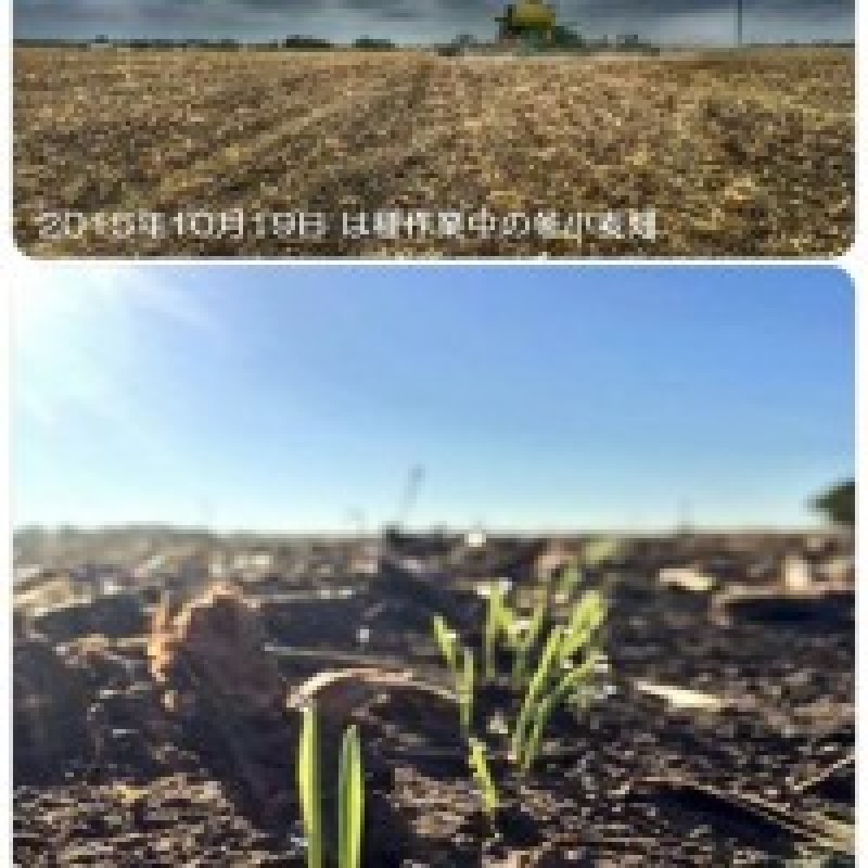 10月半ば、耕起、施肥をして、硬質赤色冬小麦をは種していたところ、珍しい雲が現れたそうです。この後、雨が降りましたが、は種作業に支障はなかったそうです。 (写真上)