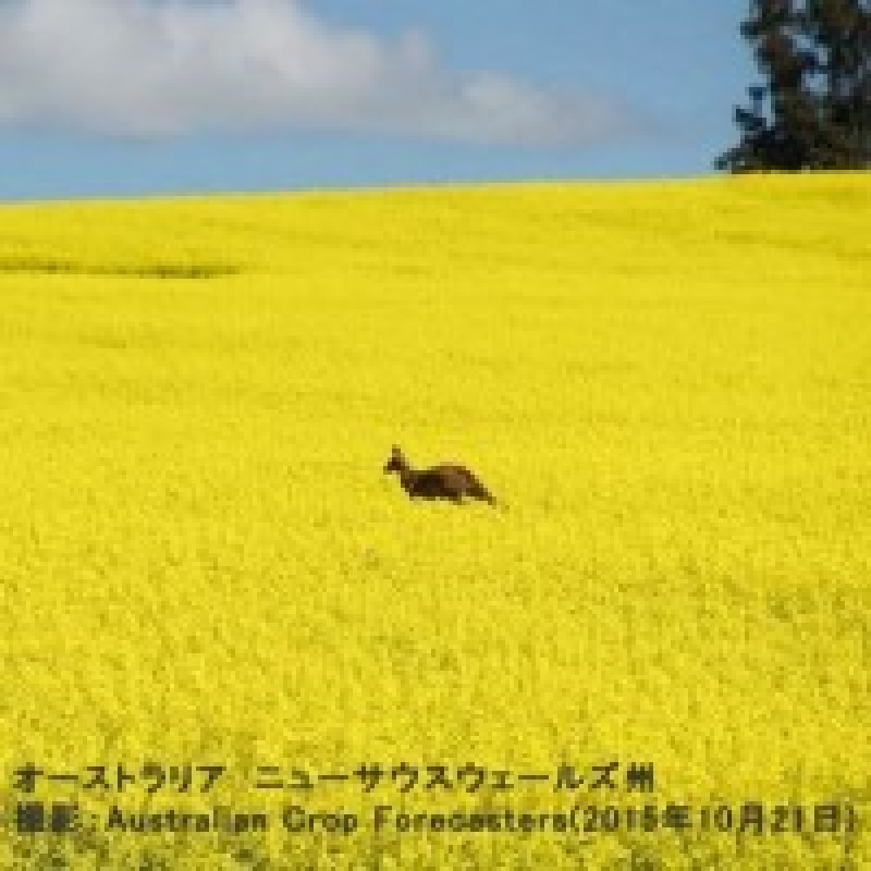オーストラリア、ニューサウスウェールズ州中央部のなたねは、10月21日現在、開花期を迎えております。さて、写真では、なたね畑の中をカンガルーが飛び跳ねておりますが、カンガルーは何をしているのでしょうか?もしや、なたねの花を食べているのでしょうか?